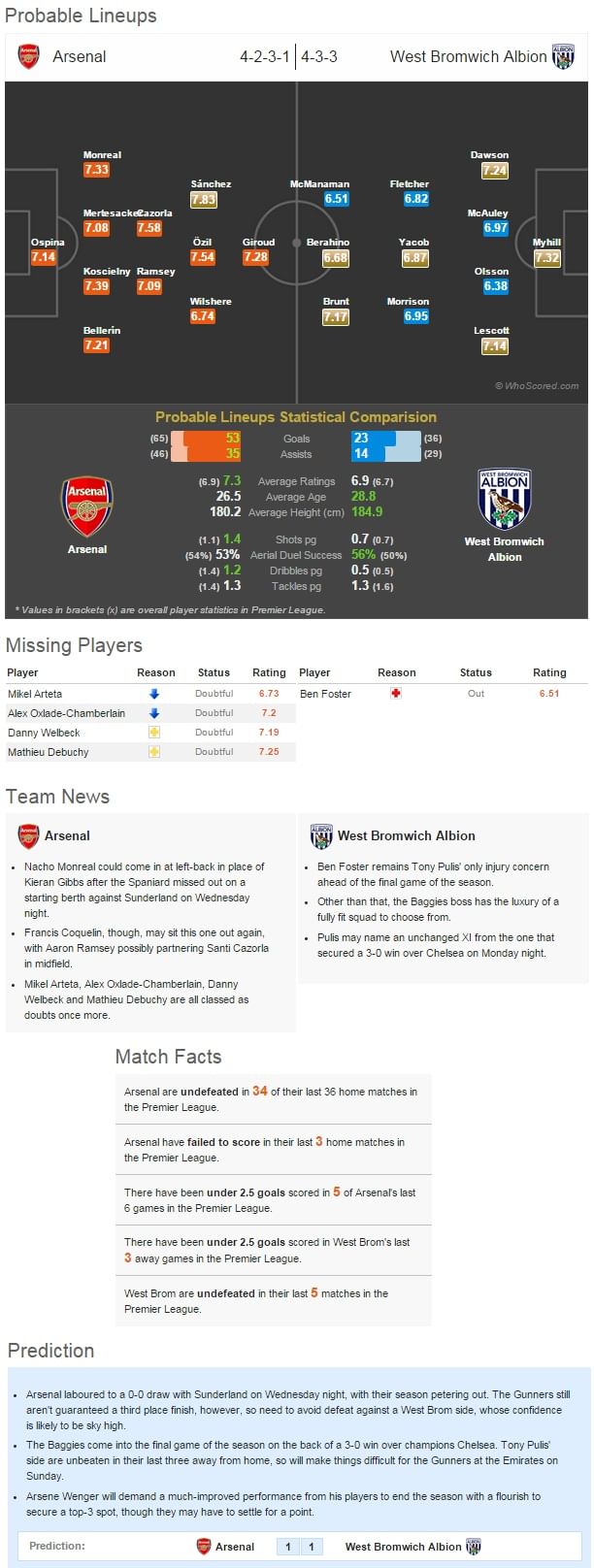 Arsenal vs West Bromwich Albion - Statistical Preview