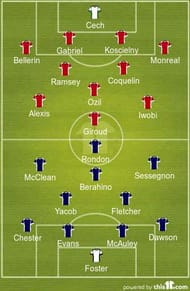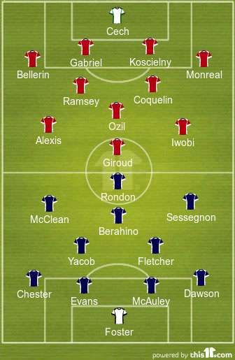 Arsenal (4-2-3-1): Cech; Bellerin, Gabriel, Koscielny, Monreal; Ramsey, Coquelin; Iwobi, Ozil, Sanchez; Giroud.