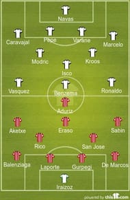 With Sergio Ramos ruled out of the game after dislocating his shoulder in the UEFA Champions League group stage clash against Shakhtar Donetsk last week, Madrid have their work cut out trying to contain Bilbao forward Aritz Aduriz who has been in stellar form this season.