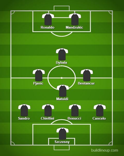 Juventus: Wojciech Szczesny, Joao Cancelo, Leonardo Bonucci, Giorgio Chiellini, Alex Sandro, Miralem Pjanic, Rodrigo Bentancur, Blaise Matuidi, Paulo Dybala, Mario Mandzukic, Cristiano Ronaldo.