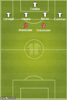 Real Madrid went into the game with Isco replacing the injured James Rodriguez in midfield. The defensive line saw 3 changes. With Ramos injured, Nacho came in to pair up with Varane. Both the fullbacks were replaced too, with Daniel Carvajal and Fabio Coentrao replacing Alvaro Arbeloa and Marcelo.