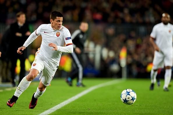 The Paris Saint-Germain defender on loan to Roma did not have a great game and was constantly teased by Dani Alves and Lionel Messi on the left flank throughout the game. The French left-back supplied the cross, which was eventually headed in by Dzeko for Roma's only goal of the game.