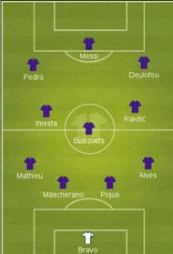 The 4 man defence could feature the likes of new recruit Jeremy Mathieu as a left full back, Gerard Piqué and Javier Mascherano as central defenders , and Dani Alves as right full back. It might be noteworthy that the 30-year old Mathieu would face good competition from Jordi Alba for the left full back position.
