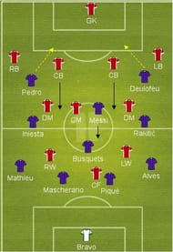 Gerard Deulofeu and Pedro are the probable wingers to accompany the phenomenal Lionel Messi in forming the forward line.