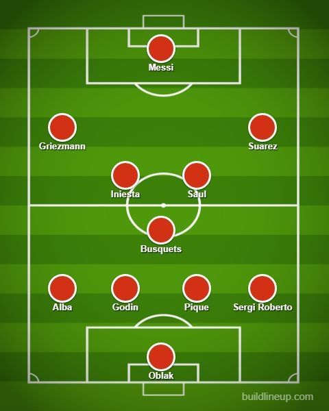 Final Lineup: Oblak; Roberto, Pique, Godin, Alba; Busquets, Niguez, Iniesta; Griezmann, Messi, Suarez