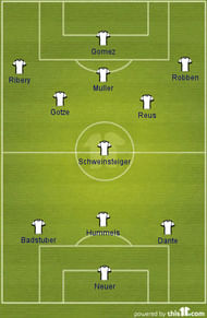 Bench: Philipp Lahm, Javi Martinez, Ibrahim Afellay, Tony Kroos, Klaas Jan Huntelaar.