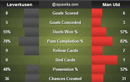 Since their opening round clash in the Champions League, United have scored two goals and conceded one while Leverkusen have scored six and conceded one.