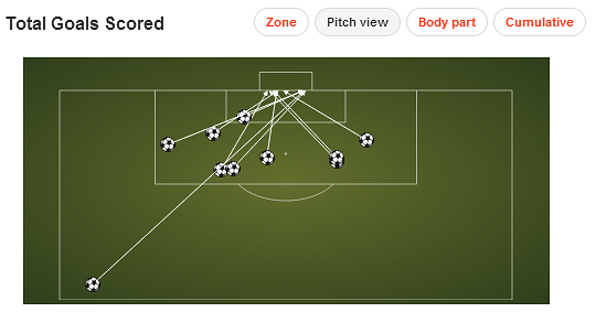 Kevin de Bruyne scored 10 goals for Werder Bremen last season – including a 40-yarder – and came second in the club’s overall Performance Score rankings with 1020.