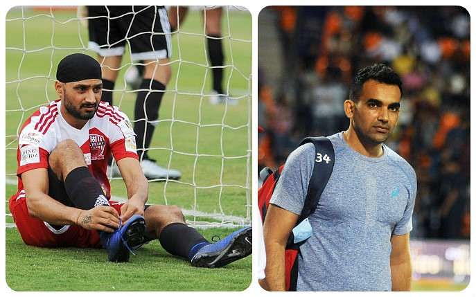 A number of veteran Indian cricketers including Harbhajan Singh and Zaheer Khan also featured in the All Hearts XI line-up last evening. Here are a couple images which show the two veteran Indian bowlers gearing up before the big kick-off.