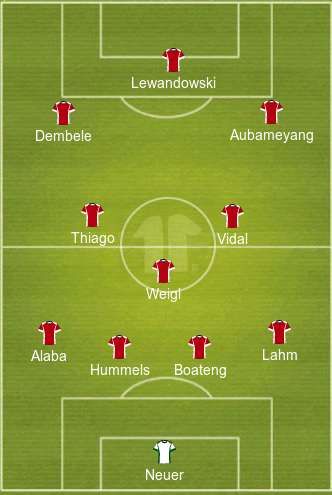 The defensive line consists of only Bayern Munich players as most Dortmund defenders have been faltering regularly.