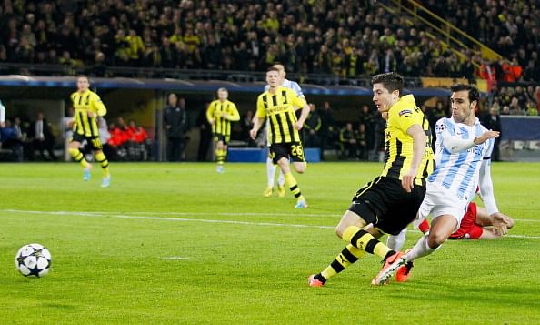 But Dortmund rarely fail to score at the Signal Iduna Park, and five minutes from half-time, they levelled the score on the night. Retrieving the ball inside their own half, the ball was played neatly to Gotze, who found Reus in an awkward position, with the ball being played slightly behind his run. What ensued what obscenely brilliant. A mid-air back-heel flick on (I told you, it was quite good) played into the path of Lewandowski who rounded the ‘keeper cleverly before finishing. 1-1.