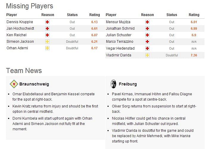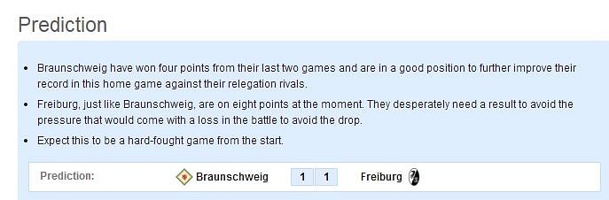 Freiburg, just like Braunschweig, are on eight points at the moment.