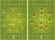 Brazil: Cesar; Silva, Luiz, Marcelo, Alves; Fernandinho, Oscar, Paulinho; Willian, Bernard, Jo