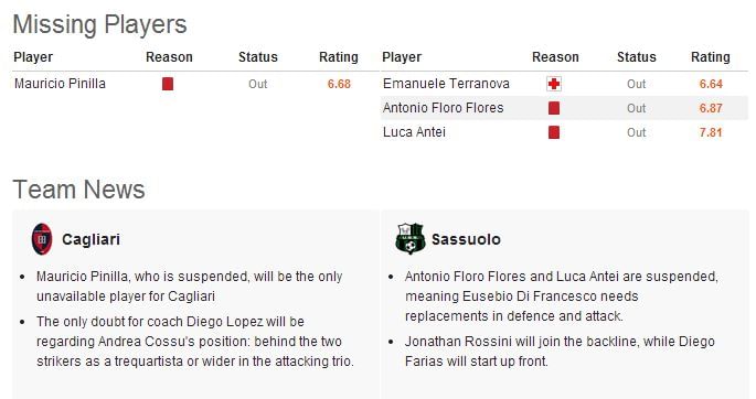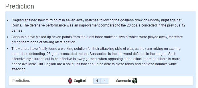 Cagliari attained their third point in seven away matches following the goalless draw on Monday night against Roma. The defensive performance was an improvement compared to the 20 goals conceded in the previous 12 games.