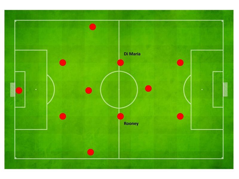 The best formation for a player like Rooney to flourish would be the diamond midfield formation, with him playing on the right or left behind the tip, a role to be filled by Juan Mata. He can play behind the No. 10 with Angel Di Maria, partnering him on the other side. This formation requires a strong defensive midfielder who can break play easily. Of the available options, we have Daley Blind, Carrick and Marouane Fellaini, who on their day can be exactly what is required.