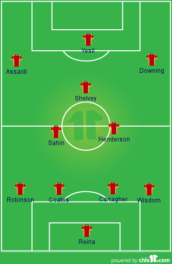 Liverpool: Fabio Borini, Lucas Leiva and Glen Johnson are ruled out of this game with injuries. Rodgers fielded a youthful side against West Brom and the same trend could continue, especially with tough fixtures against Newcastle and Chelsea on the horizon in the Premier League. Rodgers’ priority would be to save his sole striker Luis Suarez, from burning out. Also, with the Uruguayan is prone to getting yellow-carded, it might be best for Rodgers to keep him away from action for this one, as Suarez faces a one-game ban if he receives one more yellow card before December 1st. Sebastian Coates was impressive in the second half of the Merseyside derby, and could start in defence alongside Jamie Carragher, who will be the experienced hand along with Stewart Downing in what will otherwise be a youthful side. This is what a possible starting 11 could look like: