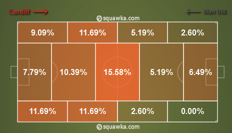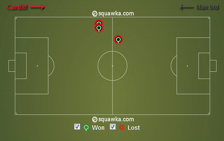 Cardiff scored a last-gasp headed goal to share the points with Man United tonight. Wayne Rooney scored first, but former Man United youth star Frazier Campbell equilised. However, just before half-time Patrice Evra scored from a Rooney corner. Then right at the death, Kim scored after a wicked ball in by Peter Wittingham