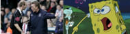 It’s no secret that the referee Mike Riley has an uncanny resemblance to Squidward from Spongebob Squarepants. In this pic, we discover that Riley isn’t the only one who looks like a Spongebob character, as Moyes gives him stiff competition posing as Spongebob himself.