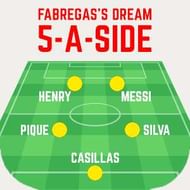 "And up front Thierry Henry and Lionel Messi," he concluded forming possibly one of the most attacking five-a-side teams we've seen in a while. Fabregas played with the little Argentine in his spell at Barcelona and learnt a lot from Thierry Henry, whom he shared the Arsenal dressing room with.