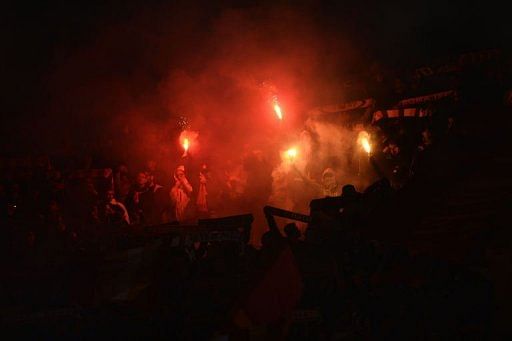 ANSA news agency said medics driving an ambulance in the area were forced to flee after their vehicle was set upon by fans wielding a number of weapons.