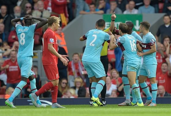 Then it was Mark Noble's turn to see red for West Ham for a lunge into a tackle, following which a 10 man West Ham would score against a 10 man Liverpool through Diafra Sakho.