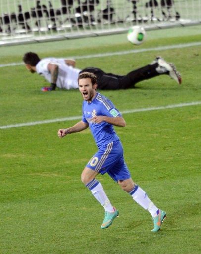Strikes by Juan Mata (2nd left) and Fernando Torres (top centre) plus a Chavez own goal gave Chelsea a 3-1 World Club Cup victory over Mexico’s Monterrey, whose only goal came from De Nigris in added time.