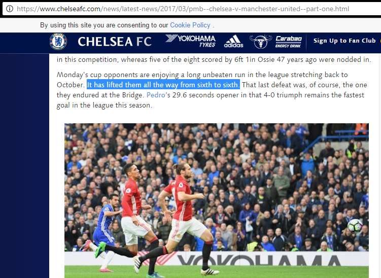 Here’s a screenshot of the Chelsea article that United fans will definitely not want to see.