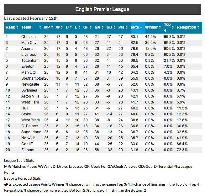 What do you do when you have a super-computer in your hands? Well, the people at Bloomberg are really awesome, so they run simulations on their super-computer to deduce which team could win this season’s English Premier League. According to the algorithms processed by the super-computer, Chelsea will be lifting the Premier League title with 83 points, followed by Manchester City who will be beaten by just a single point. The two teams will be followed by Arsenal and Liverpool, both of them finishing quite comfortably ahead of Tottenham. Current champions Manchester United, as expected, will not be participating in either the Champions League or Europa League owing to their seventh position in the league table. Norwich, Cardiff and Fulham are relegated according to the super-computer. The calculations are solely based on the current performances by each team, and keeps alternating every single week.