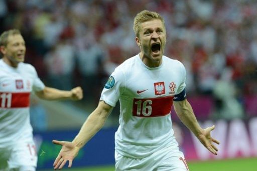 Polish midfielder Jakub Blaszczykowski celebrates after scoring during the Euro 2012 match against Russia on June 12. It is win or bust for Poland as they take on the Czech Republic on Saturday knowing that any other result would see them exit the European Championship.