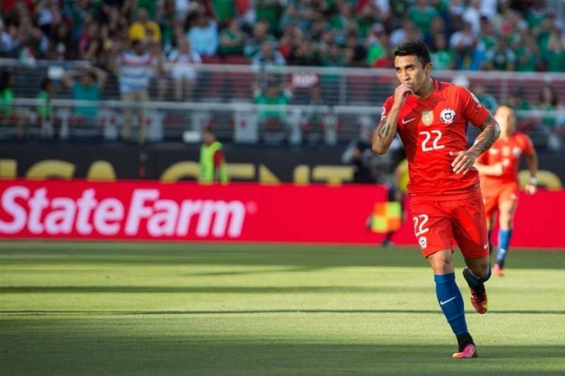 The 30-year old scored his first international goal when he tucked away a rebound from Guillerme Ochoa for the opener, and got his second late on when he capped off a terrific evening for Chile with an equally terrific lob over Ochoa.