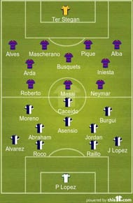 Barcelona (4-3-3): Ter Stegen; Alves, Pique, Mascherano, Adriano; Turan, Busquets, Iniesta; Messi, Neymar, Roberto