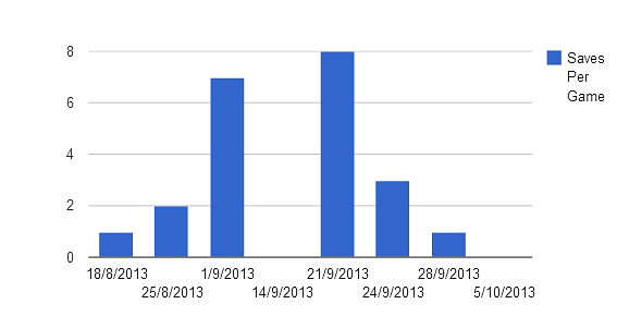 The Barcelona goalkeeper makes on average four saves to every goal which he concedes, a figure which makes Courtois’ 2.5 look poor in comparison. Whilst there has to be some leeway with this statistic due to the quality of shot faced, Valdes actually faces more shots per game than Courtois; the difference in these two figures suggest a slight difference in class between the two.