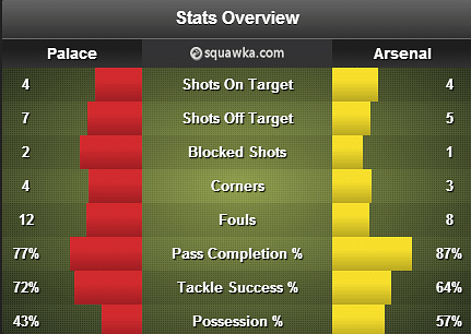 The stats reflected a quite even game in terms of chances created and Arsenal were just that bit more clinical as they came away with two goals for their trouble while Palace wasted several golden opportunities that came their way.