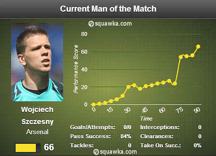 The match started off as a even contest between the two sides, but Arsenal’s quality soon told as they pulled away in the first half in terms of Squawka’s performance score.