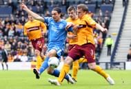 Glasgow, SCOTLAND – APRIL 16: Steven Hammell of Motherwell competes with Danny Invincibile (L) of St Johnstone during the Scottish Cup semi-final between Motherwell and St Johnstone at Hampden Park on April 16, 2011 in Glasgow, Scotland.