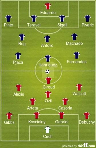 Arsenal (4-2-3-1): Cech; Debuchy, Gabriel, Koscielny, Gibbs; Arteta, Cazorla; Walcott, Ozil, Alexis; Giroud