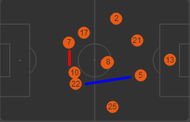 Only 31% of the play was through the middle. (Image courtesy whoscored.com)