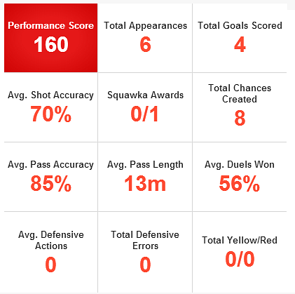 Complicating Dzeko’s claim for a starting-berth though is the consistent form of Aguero. The Argentina international has started the current season in solid fashion and looks to be the first choice when he’s fit & ready, bagging 4 goals in his opening 6 games to compliment his 70% shooting accuracy.