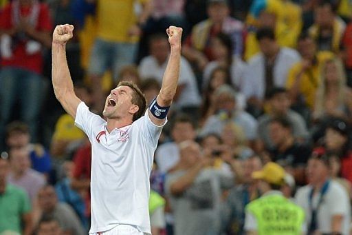 English midfielder Steven Gerrard celebrates after their Euro 2012 match against Ukraine on June 19. England scraped into the quarter-finals of Euro 2012 after a goal-line refereeing blunder helped them to a 1-0 win over Ukraine which sent the co-hosts crashing out.