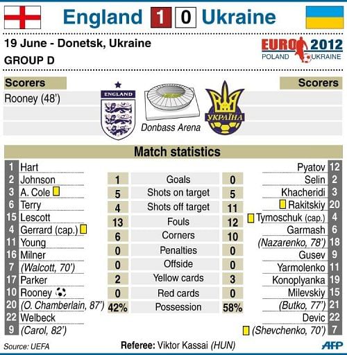 English forward Wayne Rooney celebrates after scoring during their Euro 2012 match against Ukraine in Donetsk on June 19. A header from Rooney was enough to see England finish top of Group D and send them into a quarter-final.