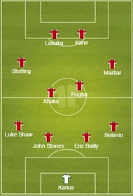 Substitutes: Jack Butland (€9m), Kurt Zouma (€17m), Ross Barkley (€22m), Memphis Depay (€25m), Leroy Sane (€30m), Michy Batshuayi (€25m)