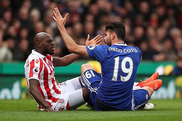 Diego Costa hasn’t been his usual angry and belligerent self on the pitch since the opening month of the season and viewers of the Premier League had almost become accustomed to a more benevolent version of the striker. However, the red mist descended on the Spaniard against the Potters once again as he tussled and tumbled with members of their backline and some more.