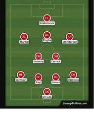 Manchester United (4-2-3-1): De Gea; Valencia, Jones, Rojo, Darmian; Carrick, Herrera; Martial, Mkhitaryan, Pogba; Ibrahimovic