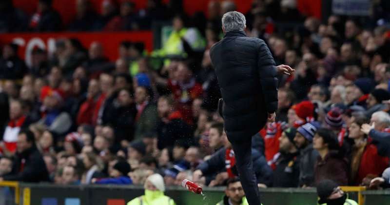 The Manchester United manager was sent off to the stands for kicking a water bottle in frustration and straying out of his technical area.
