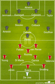 Manchester United (3-4-1-2): De Gea; Smalling, Evans, Jones, Valencia, Carrick, Di Maria, Young; Rooney; Falcao, van Persie