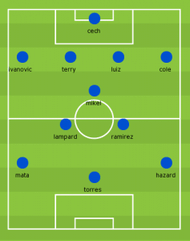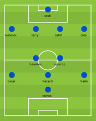 The more attacking formation would be the 4-2-3-1. The usual suspects will fit into the roles of lone striker and back four. With Chelsea’s recent acquisitions, this formation will enable them to field their young, attacking talents at the same time. Hazard could play in the hole behind the striker while Chelsea have enough bench-strength to make use of Marin and Oscar on the flanks. However, one of the senior midfielders will have to sit out if Di Matteo employs this formation. If that’s the case, this writer envisions Lampard, who will be in the final year of his contract, to be shown the bench.