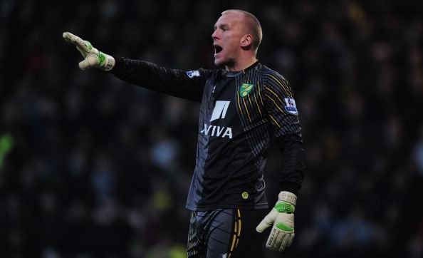 A strong right hand denied a shot to the far post from Leighton Baines early in the first half and then another in the second to keep Norwich in the game.