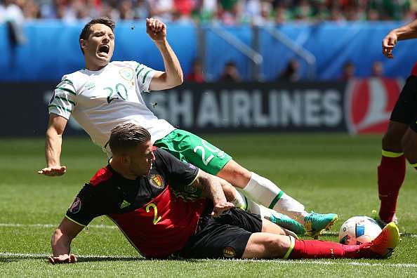 Belgium may have dominated the game, but Republic of Ireland could well have had a case for a penalty appeal early in the second half. A cross floating into the Belgium box was approaching striker Shane Long, but he was caught in the face by a high boot from Toby Alderweireld.
