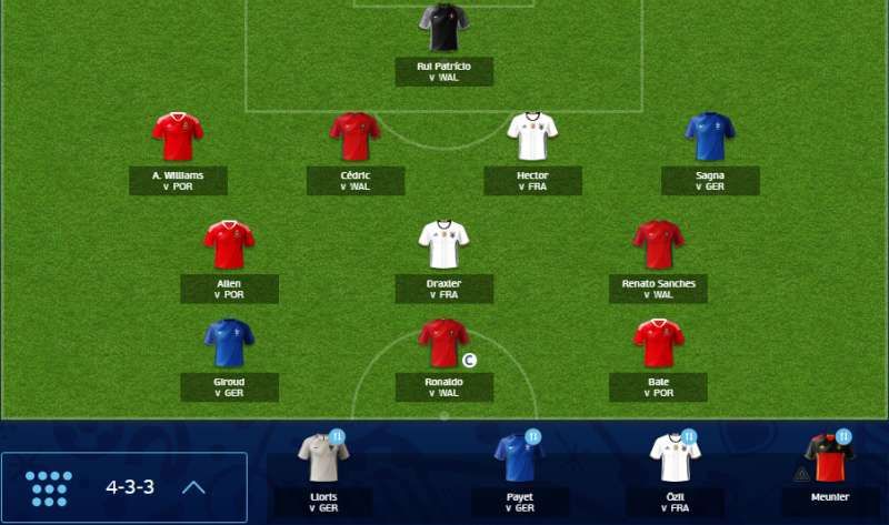 7. Before the game between Wales and Portugal make sure that all players from these teams are in your starting line-up. You can take them out and replace them with players from France or Germany if they don't do well. A similar strategy applies to your captain also.