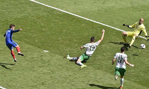 France avoided a major upset in their Round of 16 encounter against 10-man Ireland, as an Antoine Griezmann brace helped them clinch a 2-1 victory against Republic of Ireland in a high-intensity football encounter of the UEFA Euro 2016 at Lyon.
